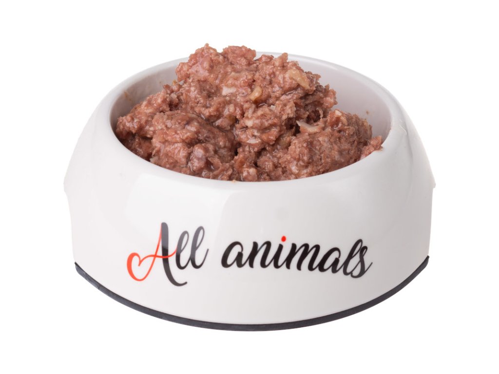 Masová konzerva pro psy s obsahem 95 % hrubě namletého kuřete a s 5 % rýže bez přidané želatiny, konzervantů, dochucovadel, barviv či stabilizátorů.