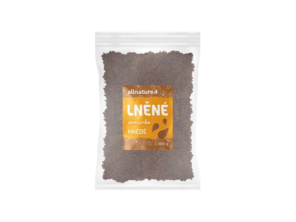 Lněné semínko patří k superpotravinám, neboť obsahuje látky prospěšné našemu organismu. Jde o drobná hnědá semínka plochého tvaru. Lněná semínka obsahují vysoký podíl vlákniny, která je zodpovědná za správnou funkci trávicího systému, vyprazdňování a vylučování toxinů a škodlivých látek z těla. Dále obsahuje celou řadu proteinů, omega 3 a 6 mastných kyselin, vitamínů skupiny B a vitamínu E, minerálních látek a stopových prvků jako vápník, železo, fosfor, draslík a selen. Lněné semínko lze přidat do řady pokrmů, pečiva i smoothies. Upozornění: Alergeny: Může obsahovat stopy jiných ořechových plodů a skořápek, seznam a SO2. Složení: Lněné semínko hnědé. Obsah: 1000 g Výrobce: Allnature s.r.o, Březhradská 148, 503 32 Hradec Králové, Česká republika. Výživové údaje ve 100 g: Energetická hodnota 2234 kJ/534 kcal Tuky- z toho nasycené mastné kyseliny 42,2 g3,7 g Sacharidy- z toho cukry 28,9 g1,6 g Bílkoviny 18,3 g Vláknina 27,3 g