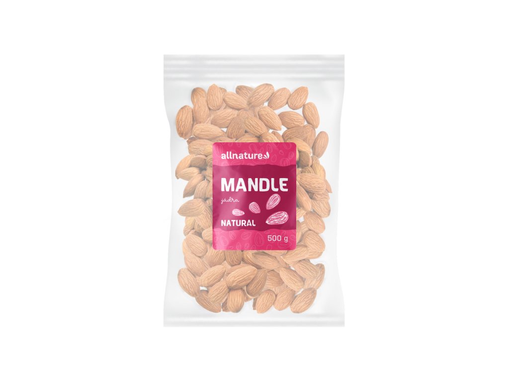 Mandle patří obecně mezi nejoblíbenější a nejdostupnější druhy ořechů. Kromě lahodné chuti, kterou každý dobře pozná na první kousnutí, obsahují vitamíny, minerální látky, vlákninu, bílkoviny i nenasycené mastné kyseliny. Představují tak skvělý doplněk zdravého jídelníčku. Mandle jsou nejen skvělou rychlou svačinkou, ale své využití najdou i při pečení, vaření či přípravě zdravých snídaňových kaší. Tip na Mandlový sýr: Mandle rozmixujeme a přes noc namočíme do vody, tekutinu přecedíme a hmotu smícháme s olivovým olejem, česnekem, citrónem a bylinkami dle vašeho přání. Necháme odležet a máte krásný, zdravý mandlový sýr. Upozornění: Alergeny: Může obsahovat stopy arašídů, skořápkových plodů, sezamu a oxidu siřičitého. Složení: Jádra mandlí. Obsah: 500 g Výrobce: Allnature s.r.o, Březhradská 148, 503 32 Hradec Králové, Česká republika. Výživové údaje na 100 g: Energetická hodnota 2642 kJ/631 kcal Tuky- z toho nasycené mastné kyseliny 52 g4 g Sacharidy- z toho cukry 19,0 g4,8 g Bílkoviny 18,0 g Sůl 0,03 g