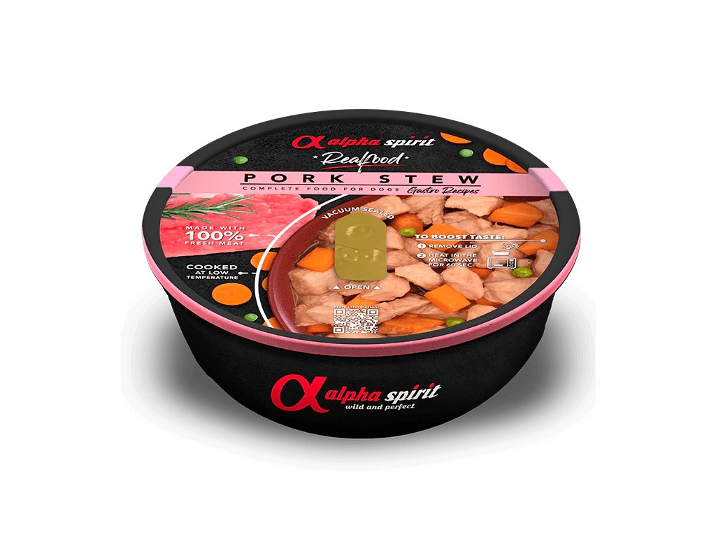 Složení:97% čerstvé vepřové maso v omáčce, hrášek, mrkev, sladké brambory, koření.