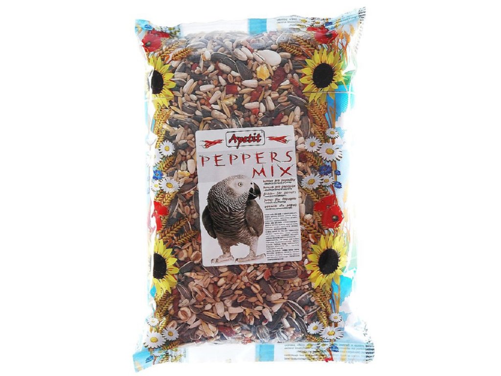 Výběrová krmná směs pro střední a velké papoušky s červenými papričkami.Kompletní krmivo pro papoušky.