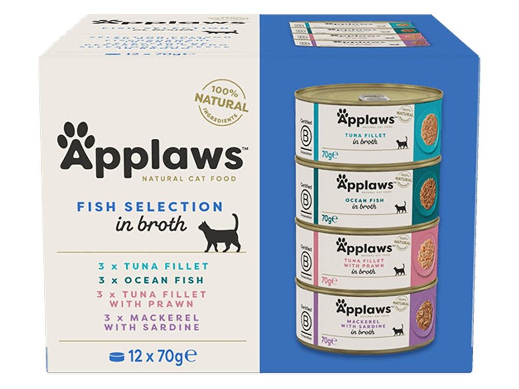 3 x konzervu s mořskými rybami 70 g: Složení: 45% makrela, 30% filety z tuňáka, 1% rýže, 24% rybí vývar. Jakostní znaky: hrubé proteiny 12%, vlhkost 83%, hrubé oleje a tuky 1%, hrubé popeloviny 3%, hrubá vláknina 1%.