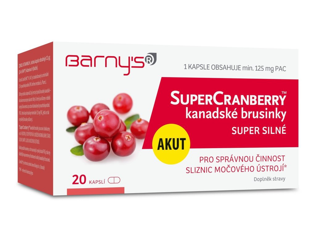 Barny's SuperCranberry™kanadské brusinky SUPER SILNÉ představují naprostou špičku v oblasti kvality, jedná se o nejsilnější brusinky od Barny's. SuperCranberry™ kanadské brusinky SUPER SILNÉ jsou navíc obohaceny o vitamin H (biotin), který přispívá k udržení normálního stavu sliznic (např. sliznic močového ústrojí).