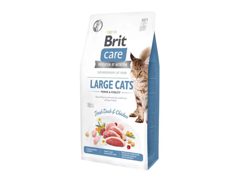 Brit Care Cat Grain-Free Large cats Power & Vitality je kompletní krmivo pro dospělé kočky velkých plemen. Hypoalergenní receptura obsahuje čerstvé kachní a kuřecí maso.