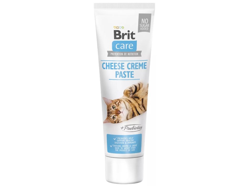 Funkční pasta Brit Care Cat Paste Cheese Creme with Prebiotic s prebiotiky pro zdravé zažívání všech koček. Pasta má neodolatelnou chuť a lákavou vůni, je proto vhodná i pro ty nejvybíravější jedince.