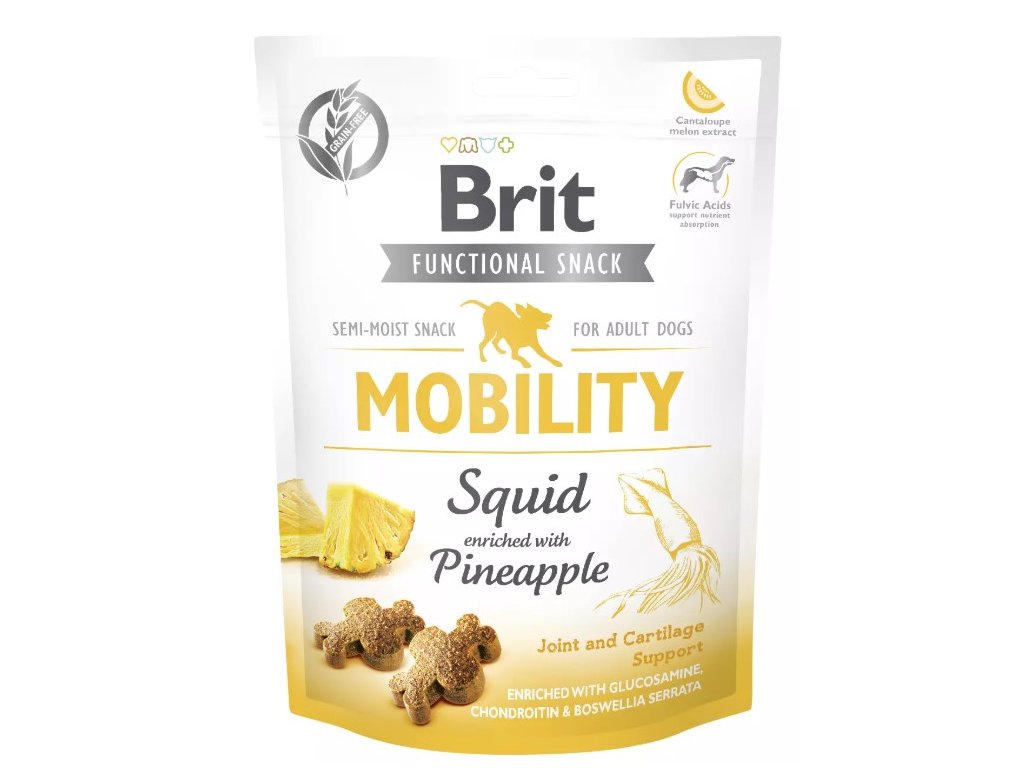 Šťavnaté pamlsky Brit Functional Snack jsou vyrobeny bez obilovin a bez brambor. Poloměkké pamlsky jsou zdravým, masitým a chutným doplňkem stravy pro všechny dospělé psy. Receptura Mobility podporuje zdraví kloubů a chrupavek. Veškeré funkční pamlsky pro psy Brit jsou obohacené o laktobacily, fulvinové kyseliny a extrakt z cukrového melounu. Fulvinové kyseliny podporují snadné vstřebávání živin z potravin, stabilizují střevní mikroflóru a zvyšují aktivitu imunitního systému. Extrakt z cukrového melounu posyktuje organismu vysoce účinnou ochranu proti volným radikálům.