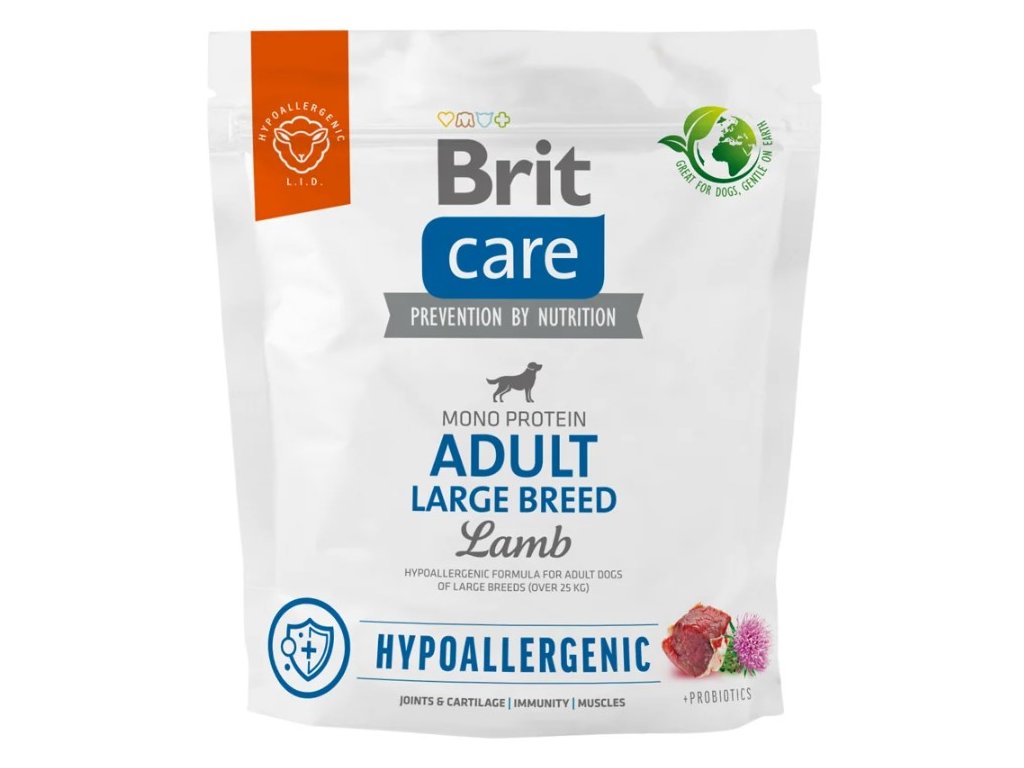 Receptura Adult Large Breed s jehněčím je určena speciálně pro dospělé psy velkých plemen. Za velká plemena jsou považována ta, která dosahují váhy nad 25 kg. Hypoalergenní složení s jedním zdrojem živočišného proteinu (single protein) slouží jako prevence před alergickými reakcemi na krmivo.
