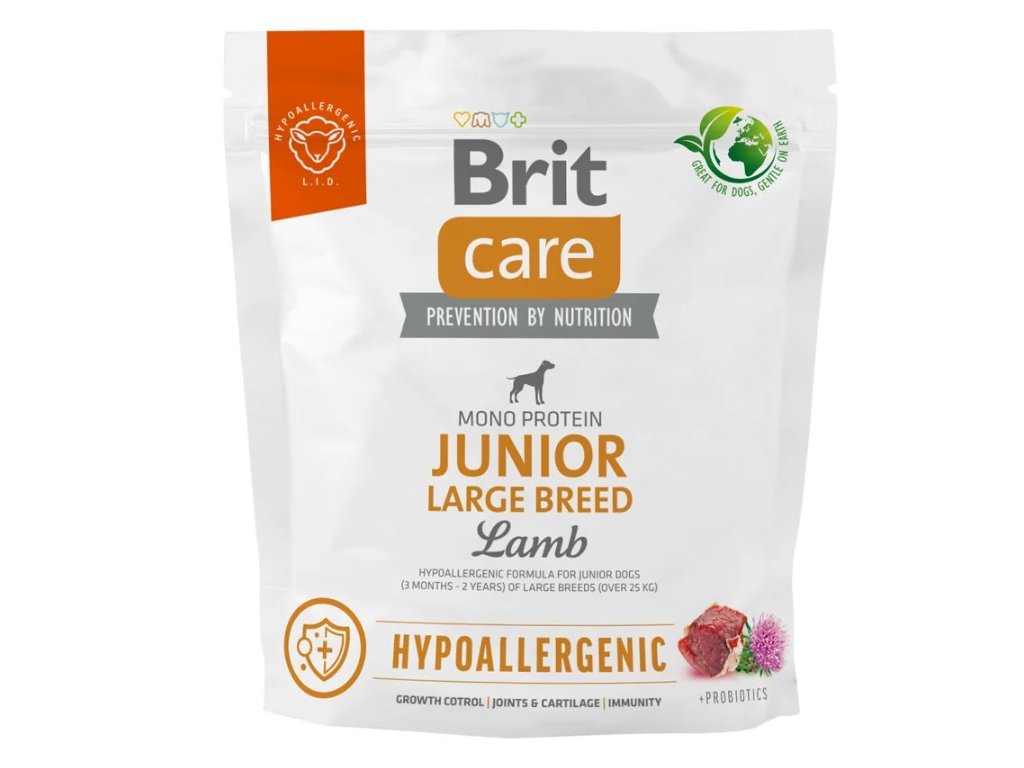 Receptura Junior Large Breed s jehněčím je určena speciálně pro štěňata a mladé psy velkých plemen. Za takové psy jsou považováni psi od 3 do 24 měsíců, kteří v dospělosti váží min. 25 kg. Hypoalergenní složení s jedním zdrojem živočišného proteinu (single protein) slouží jako prevence před alergickými reakcemi na krmivo.