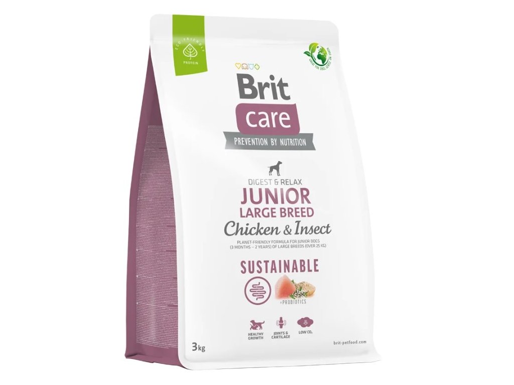 Receptura Junior Large Breed s kuřecím masem a hmyzem je určena speciálně pro mladé psy velkých plemen (plemena s hmotností v dospělosti nad 25 kg) v běžné zátěži. Za mladé psy jsou považována štěňata od 3 měsíců do 2 let. Bezlepkové složení je vhodné pro správné trávení štěňat v růstu.