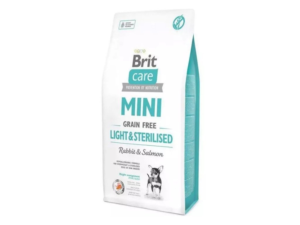 Složení pečuje o kardiovaskulární zdraví (borůvky), zdraví pokožky a srsti (vysoký obsah omega-3 mastných kyselin z řas a lososového oleje) a o pohybový aparát (chondroprotektiva, omega-3 mastné kyseliny). Díky přírodní vláknině je podáváním krmiva Light & Sterilised z produktové řady Brit Care MINI podporována i správná činnost metabolismu a vyprazdňování.