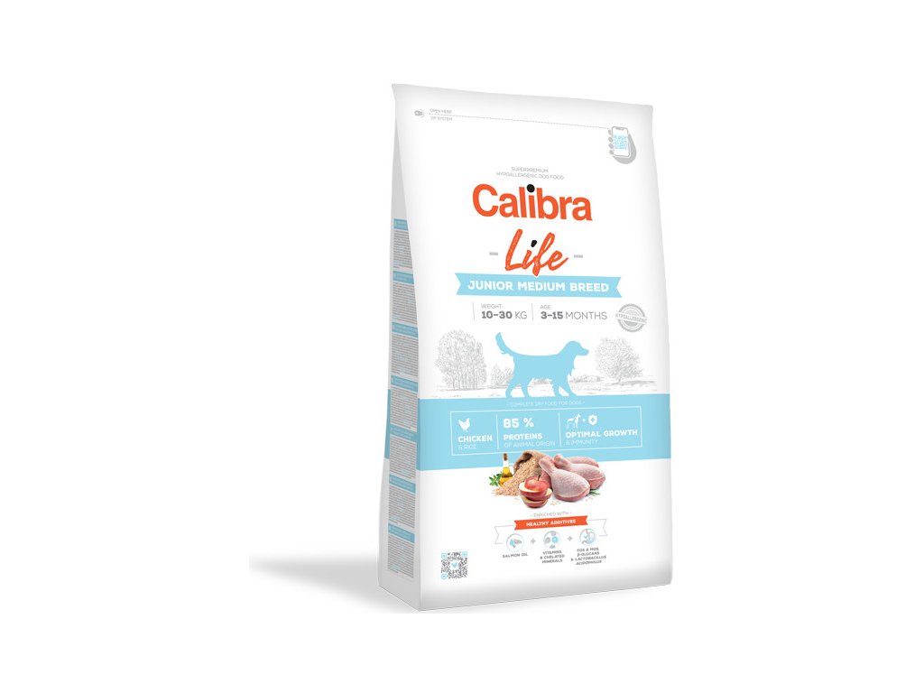 Kompletní suché krmivo z kuřecího masa pro štěňata středních plemen, které dodá dospívajícímu psovi potřebnou energii a dostatek živin pro jeho růst a vývoj. Celkem 85 % z obsažených bílkovin je živočišného původu. Tato superprémiová receptura má díky pečlivě vybraným aditivům příznivý vliv na vývoj imunity psa a na jeho růst. Díky nízkému obsahu obilovin (pouze rýže), je receptura lehce stravitelná. Lososový olej pomáhá pečovat o zdraví kůže a zářivou srst.