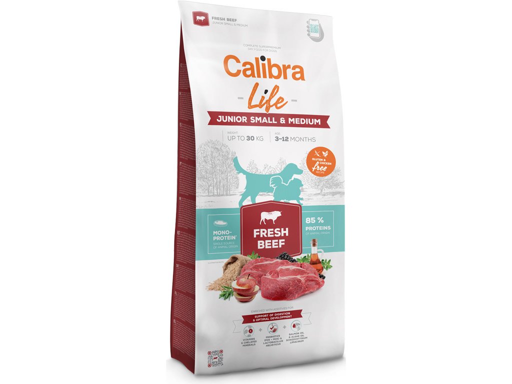 Granule s čerstvým hovězím pro mladé psy (3–12 měsíců) malých a středních plemen (do 30 kg) jsou skvěle stravitelné a vhodné i pro citlivé zažívání. Hovězí receptura je 100% monoproteinová, obsahuje 85 % proteinů živočišného původu. Neobsahuje lepek ani kuřecí. Vybraná funkční aditiva pomáhají podpořit zažívání a optimální vývoj mladého psa.