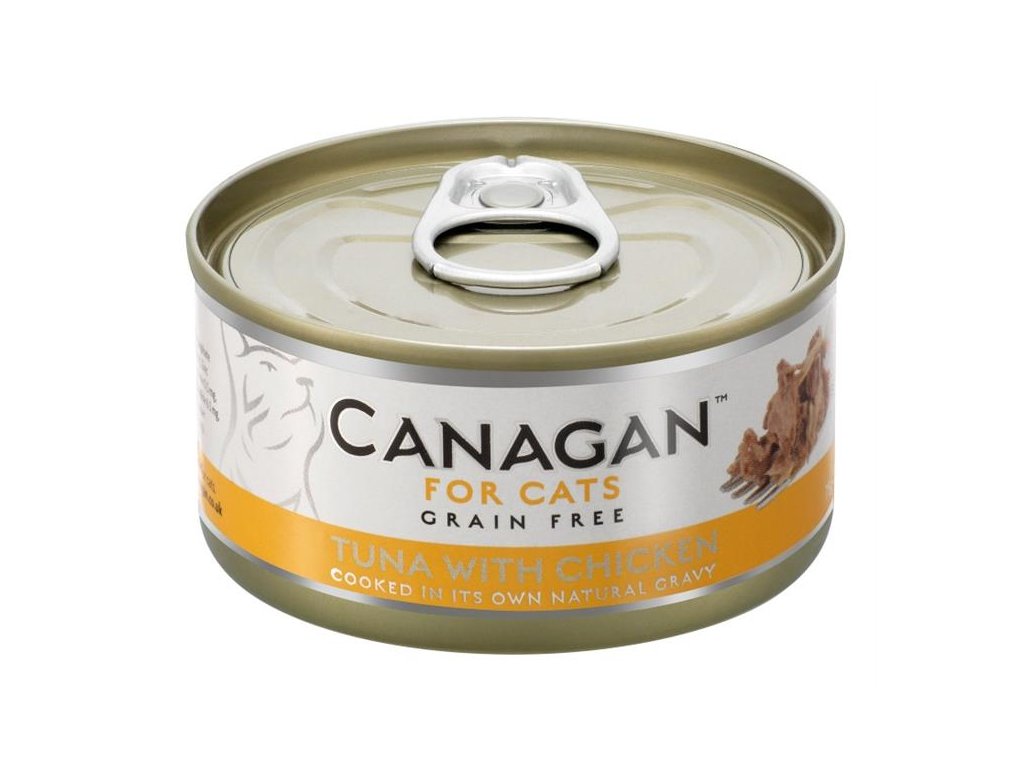 Canagan Cat Tuna with Chicken – je kompletní krmivo pro kočky. Vyrobené je z masa z tuňáků, kteří jsou volně lovení metodou šetrného odchytu na udici. Tuňáka doplňují lahodné kousky kuřecího masa - vše je šetrně vařené ve vlastní šťávě pro zachování vysoké výživové hodnoty krmiva.