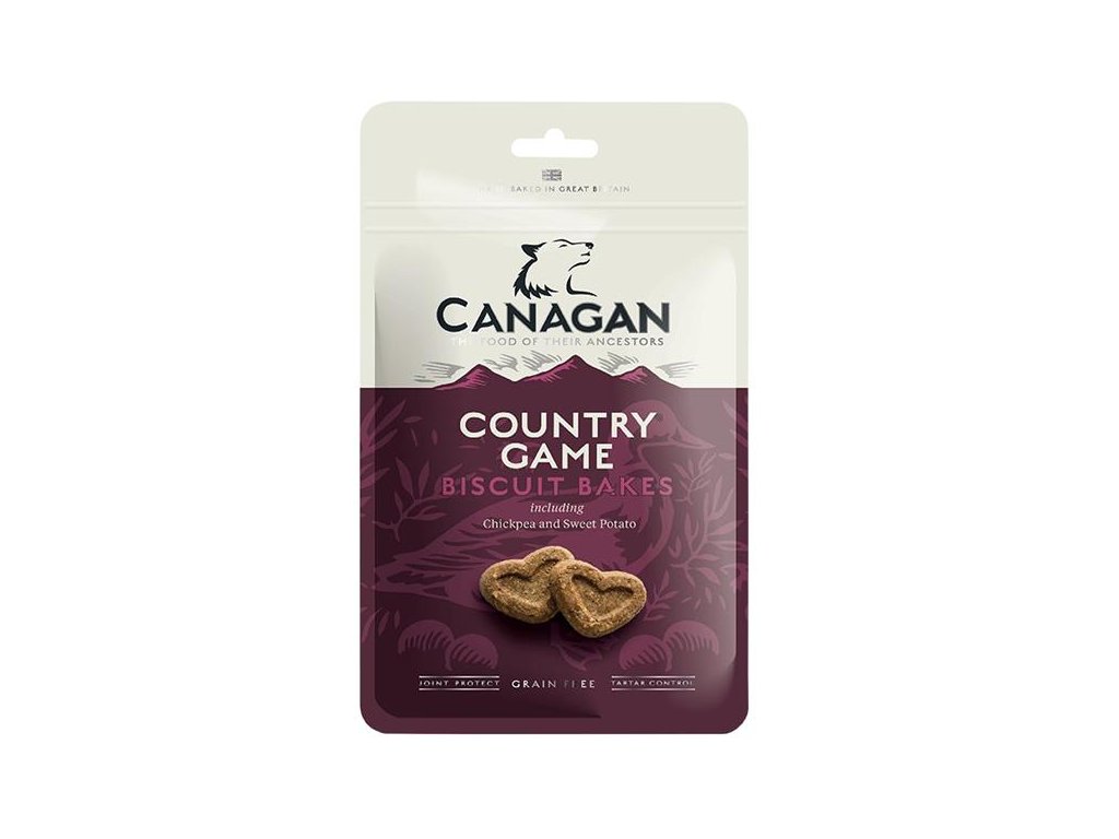 Canagan Biscuit Bakes Country Game – doplňkové krmivo pro psy = ručně pečené bezobilné sušenky se zvěřinou. Lahodná směs kachního masa, zvěřiny, cizrny, sladkých brambor a bylinek je dokřupava vypečená v pecích vyhřívaných dřevem, a i díky tomu tak skvěle voní i chutná. V sušenkách jsou navíc doplněny složky pro ochranu kloubů a pro zdravé zuby a dásně vašeho psa.