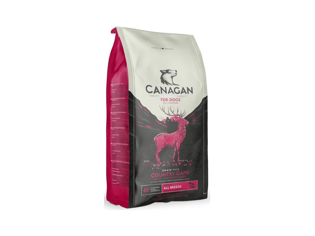 Kompletní krmivo pro psy Canagan Country Game (zvěřina) představuje specifickou recepturu, velmi podobnou stravě jejich předků. Čerstvě připravené kachní maso a zvěřina jsou zpracovávány podle standardů platných pro lidské potraviny. Živočišné suroviny perfektně doplňuje vybraná zelenina a bylinky. Společně tak dodávají receptuře Country Game jedinečnou chuť.