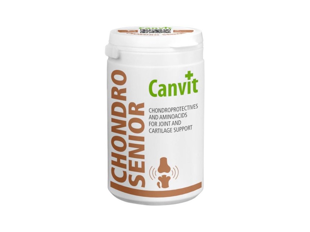 Chutné tablety Canvit Chondro Senior využívají unikátní kombinaci kloubní výživy, aminokyselin, vitamínů, antioxidantů a enzymů pro podporu kloubů, optimalizaci tělesné kondice a zpomalení příznaků stárnutí u psích seniorů.