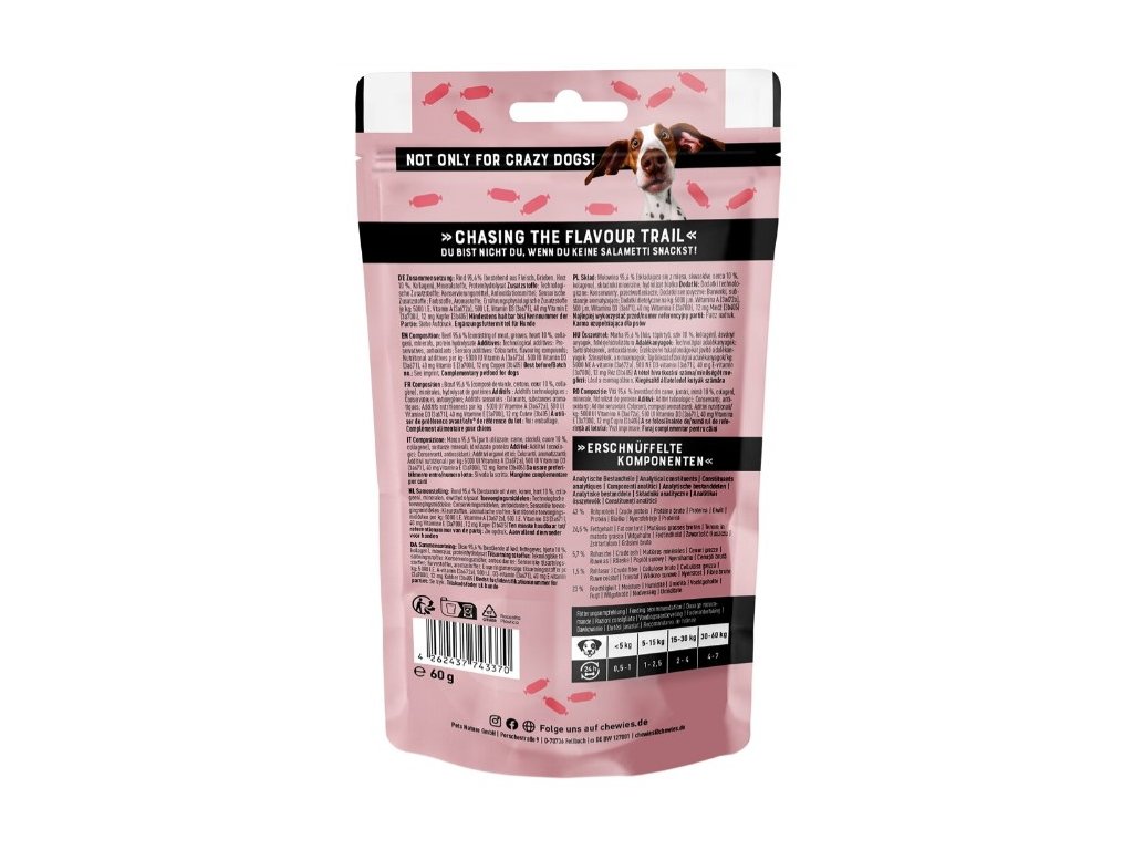 Salametti jsou měkké pamlsky ve tvaru malých salámků s intenzivní masovou chutí a vůní, které si váš mazlíček zamiluje!