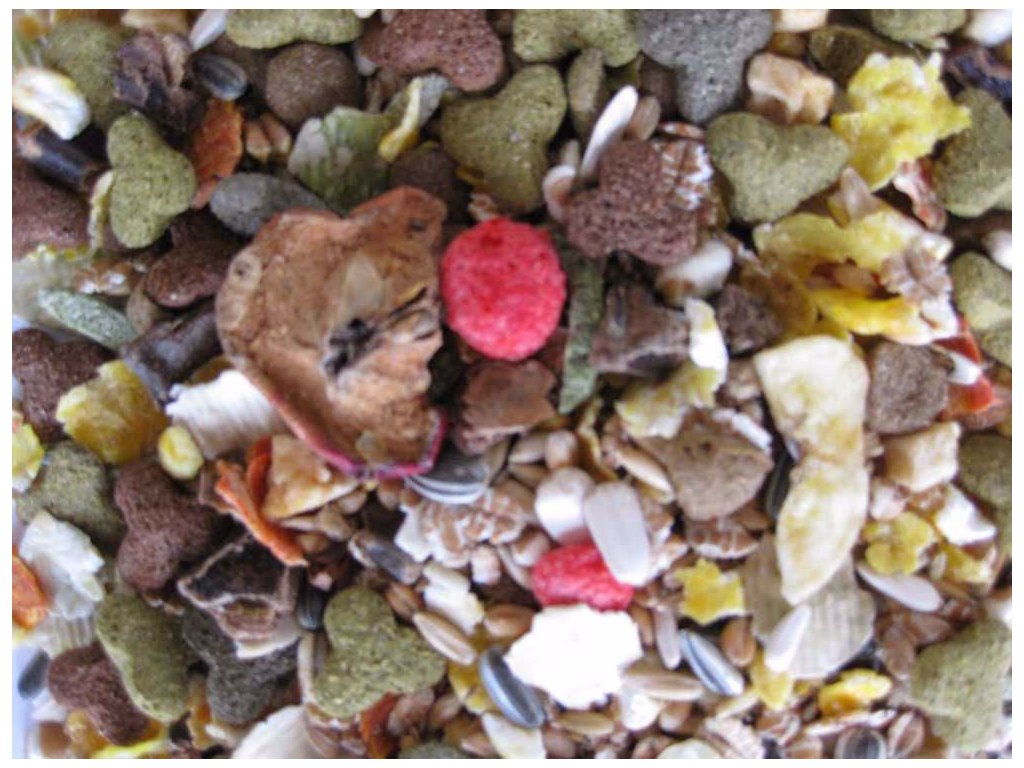 Deli Nature 5*menu RATS 2,5kgkompletní krmivo pro potkany.Neobyčejně pestrá a vyvážená směs obsahující více než 20 přírodních ingrediencí. Směs splňuje nutriční požadavky potkanů.Potkani jsou všežravci a upřednostňují pestrou stravu. Krmivo Deli nature 5*menu Rats je obohaceno extrudovanými granulemi, které jsou vysoce kvalitním a snadno stravitelným zdrojem živočišného proteinu, který potkanům velmi chutná.Směs obsahuje obiloviny ve formě kukuřičných vloček a pšeničných vloček. Takto upravené se díky želatinizaci škrobu a dalších živit stávají vysoce stravitelnými s lepší biologickou absorpcí. Potkani milují tak jako mnoho jiných hlodavců ovoce. Krmivo Deli naure 5*menu obsahuje různé druhy ovoce jako jsou rohovník, plátky banánu a jablka. Množství přírodních složek obsažených v krmivu Deli nature 5*menu Rats vytvořili skutečnou hostinu pro potkany. -100% přírodní-Vyrobeno z vysoce kvalitního surového materiálů.Výrobce Deli nature je belgická společnost s vysoce kvalitním krmivem pro ptáky, hlodavce a hospodářská zvířata. Kořeny této společnosti sahají k firmě Beyers který byl známí pro svoji vynikající kvalitu. Díky těmto kořenům se krmiva Deli Nature mohou opírat o dlouholeté zkušenosti s výrobou a použitím krmiv. Složení: obiloviny, zelenina (min. 12%, z toho 52% hrachové vločky, 13% zelené fazole, 10% kousky mrkve), ovoce (min. 11%, z toho 40% rohovník, 18% banán, 18% jablko), extrakty rostlinných bílkovin, semena, maso a živočišné deriváty, deriváty rostlinného původu, minerály, různé cukry, oleje a tuky, kvasnice. Analytické složky: hrubý protein 17%, hrubé tuky 5,8%, hrubá vláknina 8%, popeloviny 3,7%, vápník 0,64%, fosfor 0,37%, lysin 0,29%, methionin 0,12%, sodík 0,02%Nutriční doplňkové látky na kg: E672 – vitamín A 7500 m.j., E671 – vitamín D3 865 m.j.,3a700 – vitamín E (all-rac-alfa-tocopherylacetaat) 30mg, E300 – vitamín C 25mg, E6 – zinek (monohydrát síranu zinečnatého) 18g, E1 – železo (monohydrát síranu železnatého) 15mg, E4 – měď (síran měďnatý) 10mg, E5 – mangan (monohydrát síranu manganu) 6mg, E2 – jód (jodid vápenatý) 0,15mg, obsahuje přísady schválené EK.Skladujte v suchu a chladu.Potkan by měl průměrně sníst 30-40g krmiva za den.Zvíře by mělo mít vždy dostupnou čerstvou vodu.ILUSTRATIVNÍ FOTO