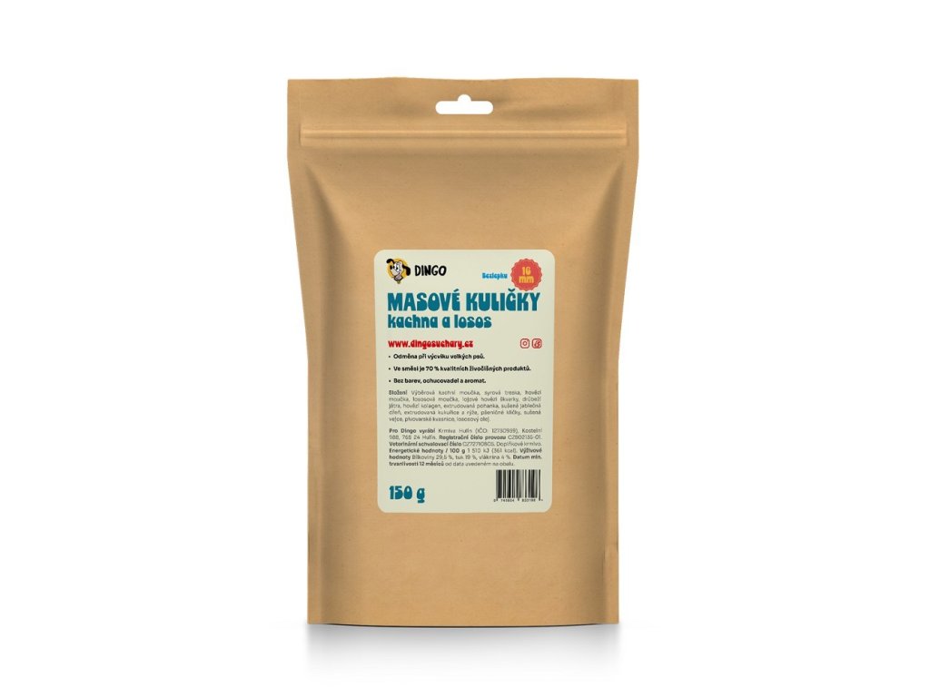 DINGO masové kuličky kachna a losos 16mm 150g