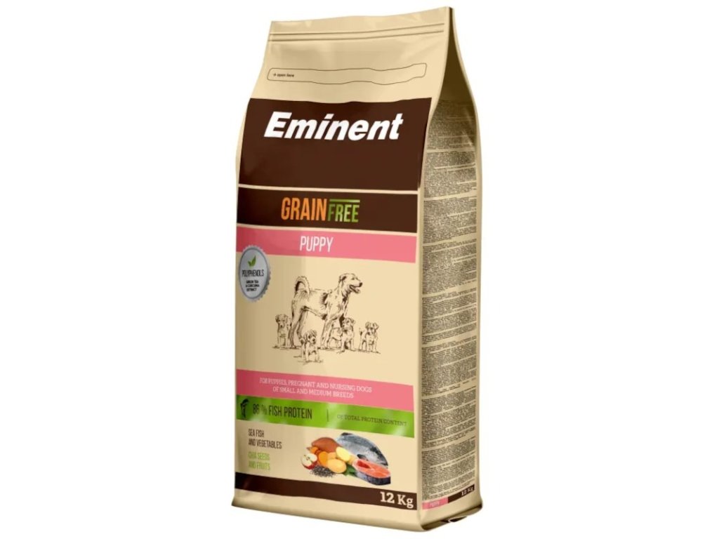 Eminent Grain Free Puppy je kompletní krmivo bez obilovin pro štěňata, březi a kojící feny malých a středních plemen.