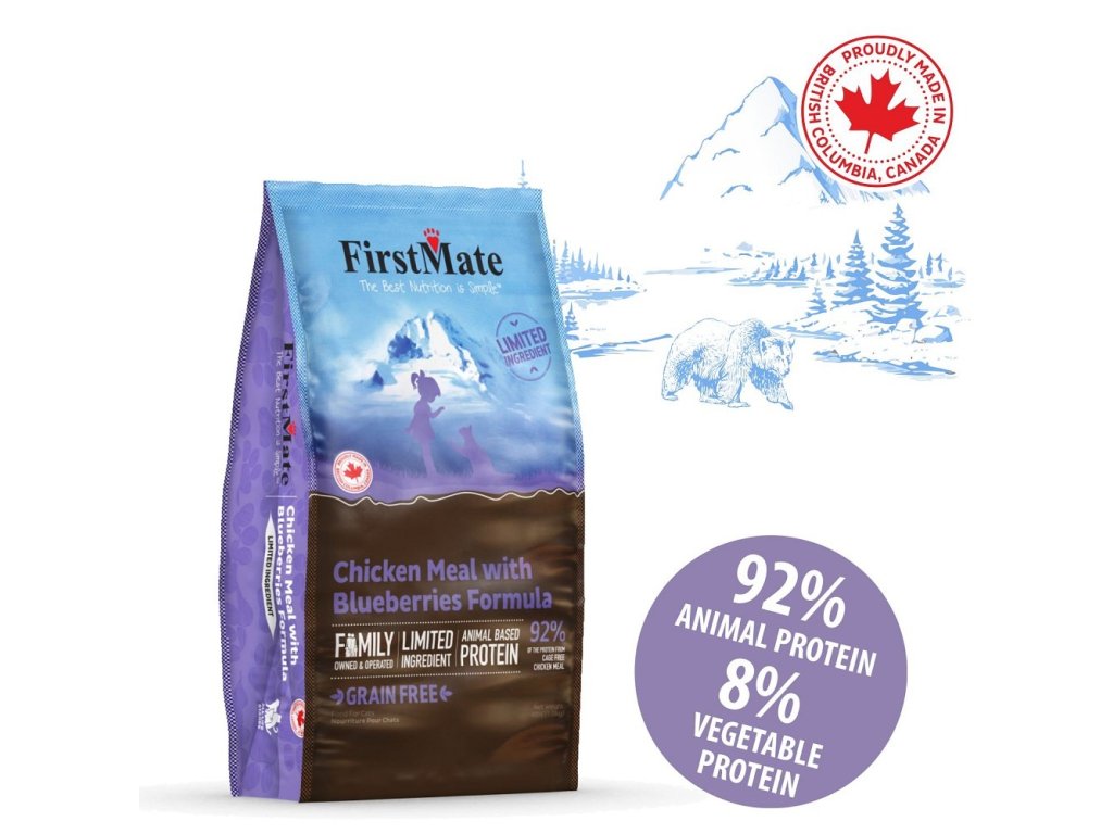 FirstMate Pacific Ocean Fish With Blueberries Cat je kompletní krmivo pro koťata a kočky všech velikostí. Krmivo je zcela bez obilovin a přidaných látek.