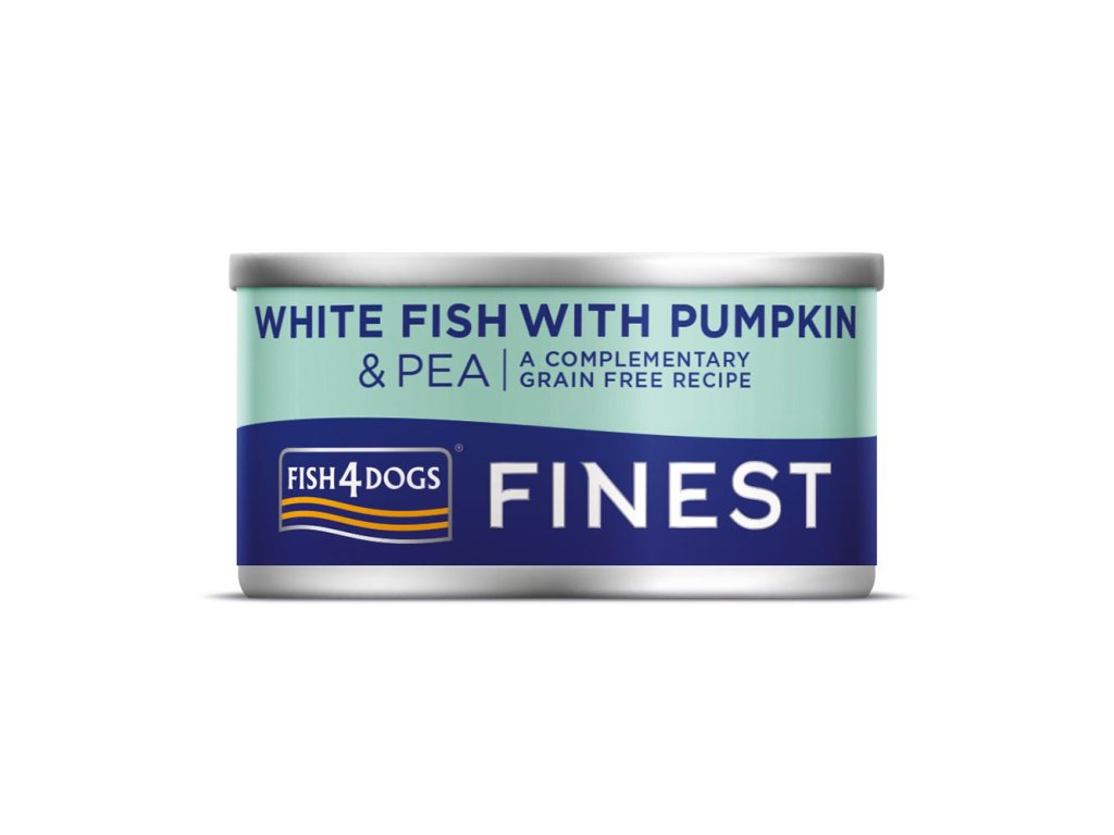 FISH4DOGS Konzerva pro psy Finest bílá ryba s dýní a hráškem 85 g