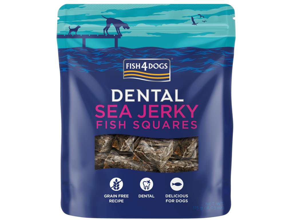 FISH4DOGS Pamlsky pro psy DENTAL SEA mořská ryba - čtverečky 115 g