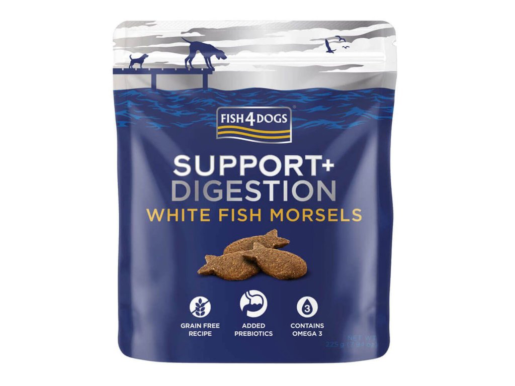 FISH4DOGS Pamlsky pro psy SUPPORT+ podpora trávení bílá ryba s prebiotiky 225 g