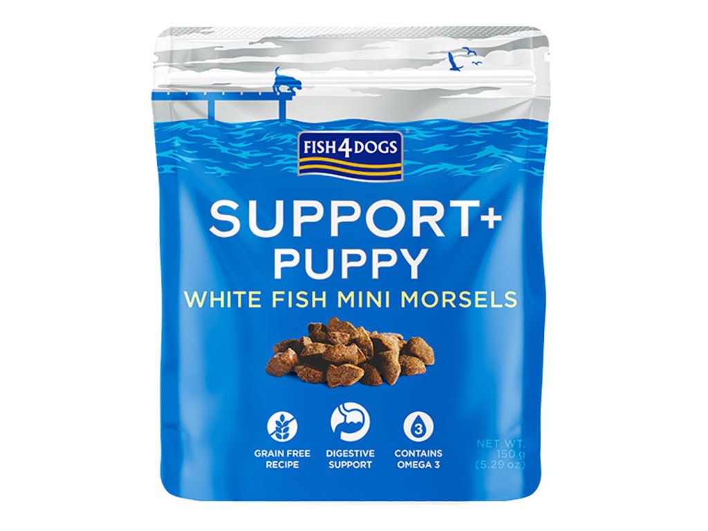 FISH4DOGS Pamlsky pro štěňátka SUPPORT+ podpora trávení bílá ryba s prebiotiky 150 g