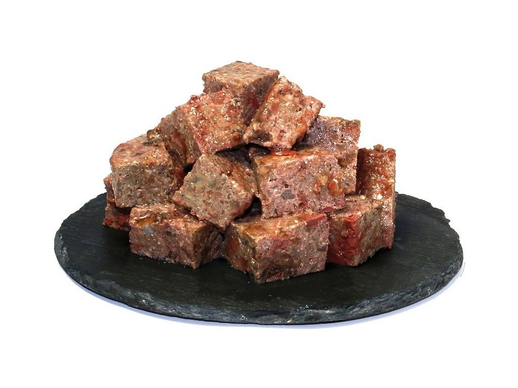 Směs (jehněčí srdce, jehněčí maso, jehněčí játra, jehněčí plíce, jehněčí dršťky) 70 %, vývar 29 %, minerály 1 %.