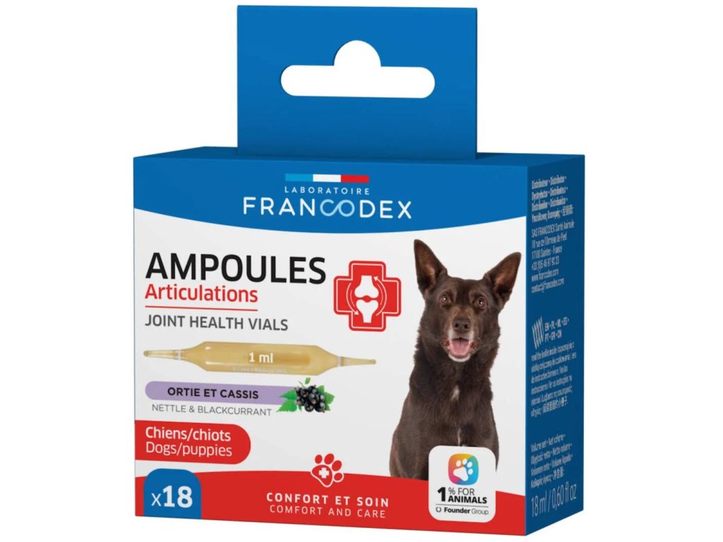 Ampulky JOINT HEALTH jsou vytvořeny tak, aby zachovaly flexibilitu kloubů a zlepšily pohodlí psů a štěňat, zejména během růstu, stárnutí kloubů nebo trvalé fyzické aktivity, obsahují rostlinné extrakty (kopřiva a černý rybíz) v kombinaci s paraprobiotiky a postbiotiky, které pomáhají udržet klouby vašeho mazlíčka pružné a pohodlné, podporují pohyblivost a zároveň posilují jeho přirozenou trávicí flóru.