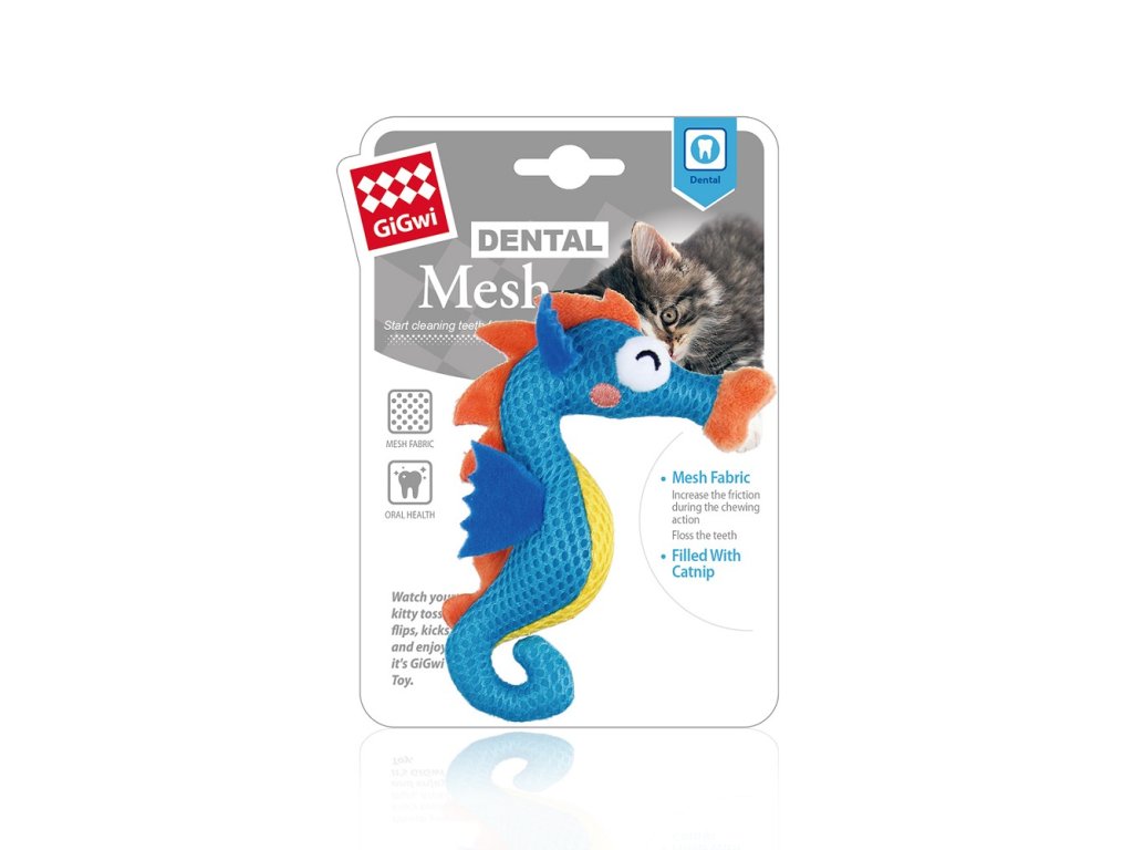 GiGwi kočičí hračka Dental Mesh mořský koník 15 x 10 x 3 cm