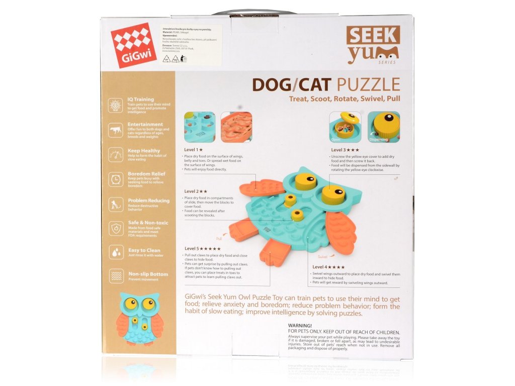 Gigwi plast Seek Yum interaktivní sova 30 x 33,5 x 4 cm