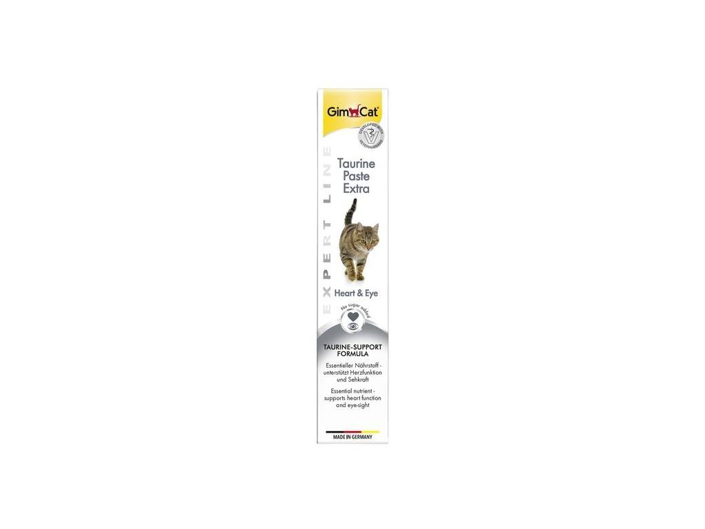 Gimcat Taurine pasta je ideálním doplňkem stravy pro kočky. Podporuje dobrý zrak a zdravé srdce, prospívá kůži a zvyšuje lesk srsti. Podporou nervové soustavy přispívá k dobré náladě kočky. Navíc má výtečnou chuť a snadno se porcuje. Bez laktózy, konzervantů a barviv. Taurin, B-komplex a vápník v jednom podávejte jako přídavek ke krmení nebo jako odměnu.