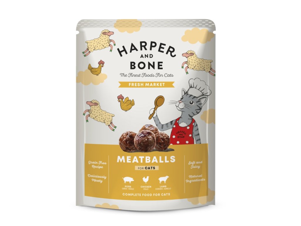 Kompletní mokré krmivo ve tvaru masových kuliček pro kočky všech plemen.