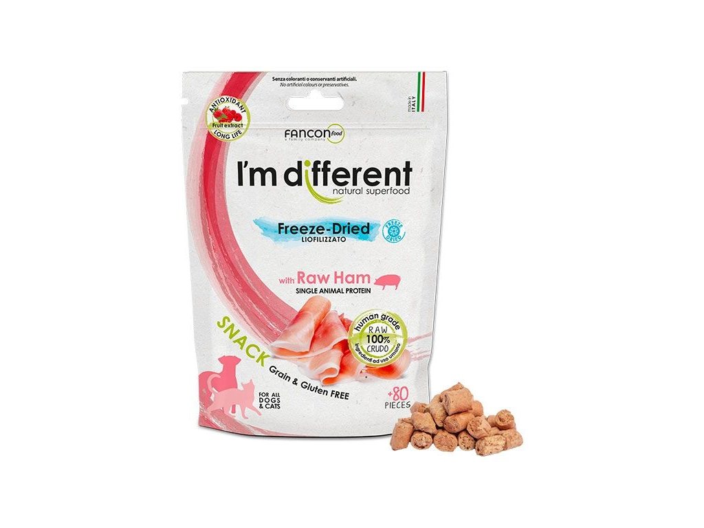 Složení: čerstvé vepřové maso 75 % (maso, játra a srdce), italská šunka (prosciutto crudo) 20 %, inulin, zeleninové aroma, extrakt z rozmarýnu, směs tokoferolů (přírodní konzervant), kvasnice, směs extraktu ze sušeného ovoce (extrakt z hroznových semínek, divoká borůvka, antioxidant kvercetin, resveratrol pro posílení imunity, divoká borůvka, brusinka, višeň, sušená švestka, semena malin, jahoda) 0,025 %