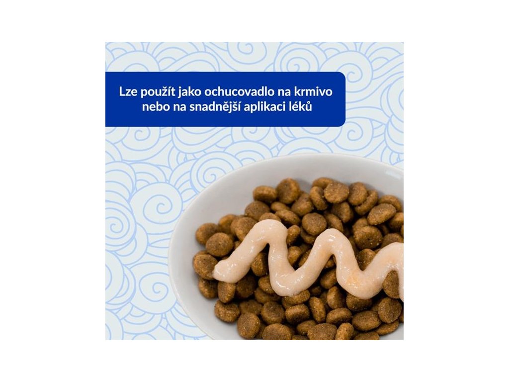 kuře 30 %, tapioka (sušená), výtažek z hřebenatky, kolagen.