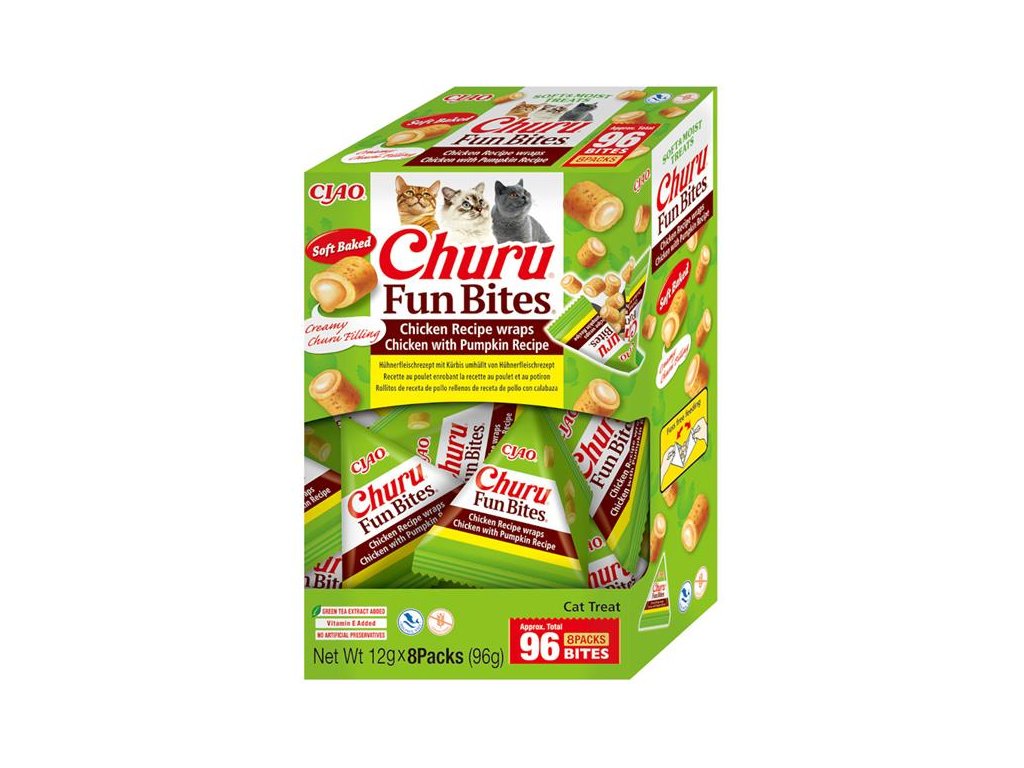 Lahodné pamlsky Churu Fun Bites ve tvaru polštářků s jemnou krémovou náplní kombinují měkkou texturu s neodolatelnou chutí. Jsou vyrobené z kvalitních surovin včetně volně chovaných kuřat, neobsahují obiloviny (grain-free), konzervanty ani umělá barviva a jsou obohacené o vitamín E, který je v kočičí stravě nezbytný a pomáhá chránit buňky před oxidačním poškozením. Zatřeste krabičkou, abyste upoutali pozornost své kočky, a užijte si spolu spoustu zábavy! Ideální pro domácnosti s více kočkami a také pro kočky menšího vzrůstu (méně než 3 kg).