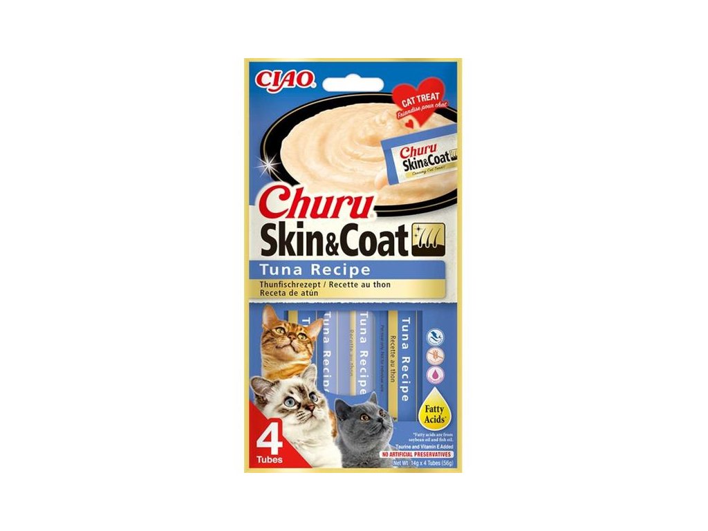 S Churu bude krmení koček zábavou. Tyto vynikající zdravé a hravé pamlsky jsou ve snadno otevíratelných tubách, které kočky jednoduše milují lízat. Určeno pro krmení z ruky. Nízký obsah kalorií. Vyrobeno z pravého mořského tuňáka nebo farmově chovaných kuřat. Žádné obiloviny, konzervanty ani umělá barviva. Vysoký obsah vody, krémová konzistence.Churu masové pyré pro kočky s divokým mořským tuňákem obohacené o omega-3 a omega-6 mastné kyseliny pro krásnou kůži a srst. Lahodný, přírodní pamlsek krémové konzistence bez obilovin. Zdravé mlsání s nízkým obsahem kalorií, bez konzervatů, chemických aromat, bez barviv a umělých dochucovadel. Inovativní měkká konzistence pamlsku Churu vám umožní trávit společné chvíle s vaší kočkou hravým a interaktivním způsobem. Díky možnosti podávat extra chutnou grain free masovou pochoutku na způsob kočičí kapsičky přímo „z ruky“ objevíte nový způsob odměňování. Churu bude bavit vás i vaší kočku! Masové pyré můžete také podávat stejně jako jinou kočičí kapsičku přímo z misky nebo ho můžete přidat ke granulím pro vylepšení jejich chuti. Kočičí pamlsky mají vysoký obsah vody a díky tomu jsou vhodným doplňkem k suchému krmivu nebo pro kočky, které málo pijí. Pamlsky Churu jsou 100% přírodní a zdravé mlsání pro kočky všech věkových kategorií. Churu jsou ideální pro ukrytí tablety na odčervení či jiného léku, který je potřeba kočce nenásilně podat.