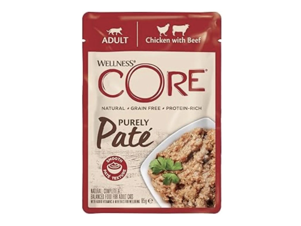 Kuřecí paštika Wellness Core Purely Pate v jemné konzistenci si zamilují všechny kočky. Po chuti plné bílkovin zatouží i ty nejvybíravější kočičí šelmy. Díky vysokému obsahu...