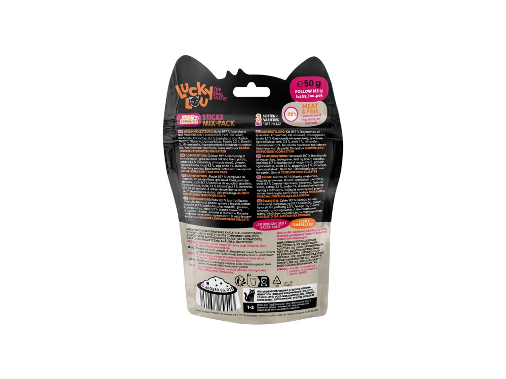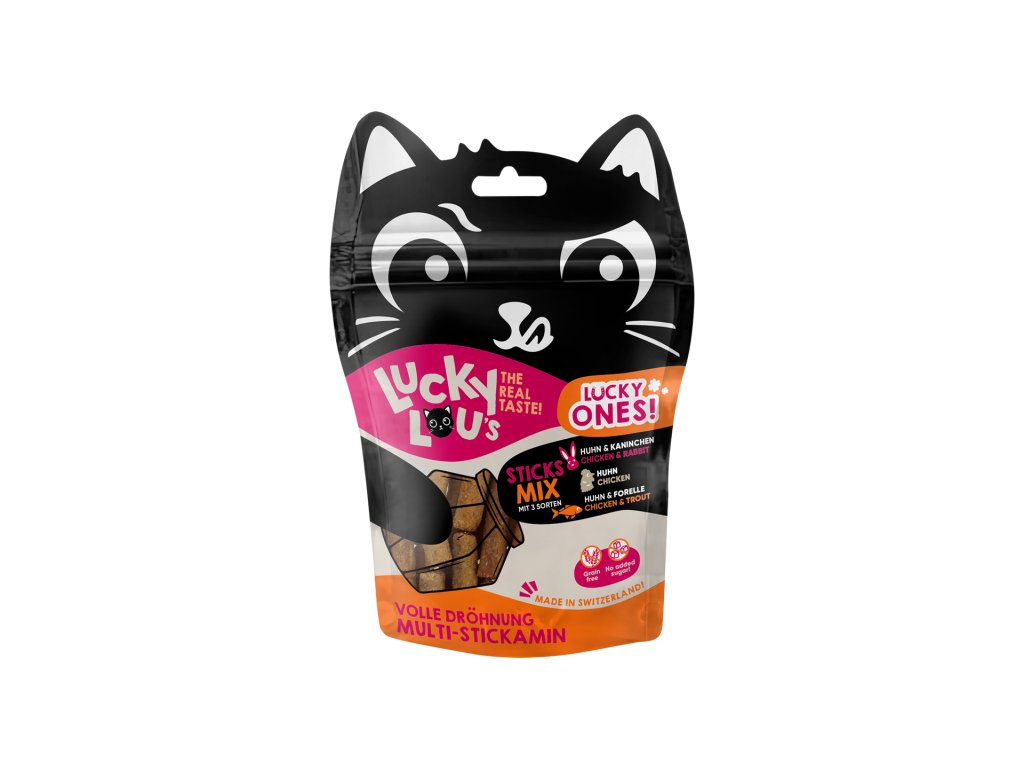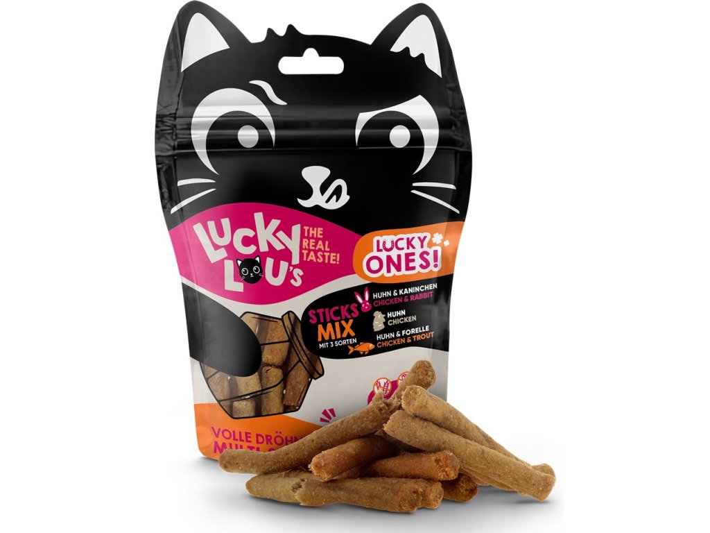 Lucky Ones Sticks jsou chutné masové pamlsky z kuřecího a králičího masa. Ideálně poslouží jako odměna při společných hrách s vaším kočičím mazlíčkem.