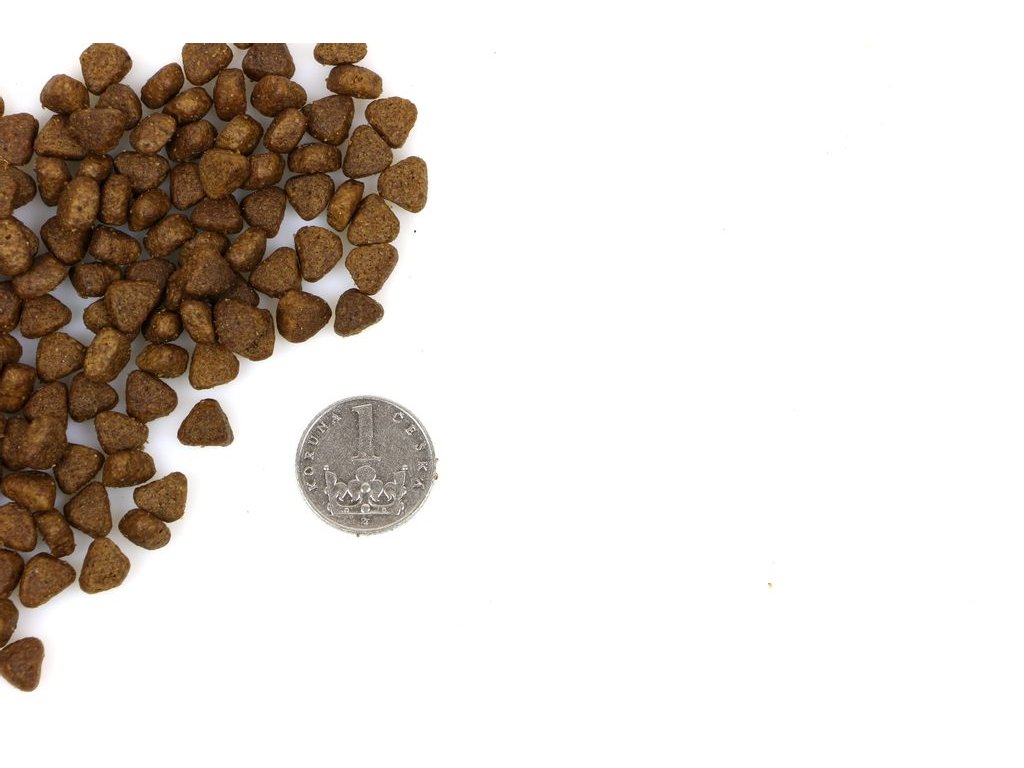 Hrubá bílkovina, 34% Hrubé tuky 20%, Hrubá vláknina 2%, Hrubý popel 9%, Vlhkost 7%, Vápník 1,86%, Fosfor 1,61%, Omega 3 0,62%, Omega 6 3,77%