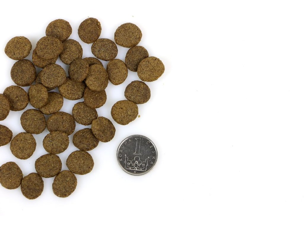Analytické složky: Hrubá bílkovina 19 %, hrubé tuky 10 %, hrubá vláknina 3,5 %, hrubý popel 7 %, vlhkost 8 %, vápník 1,2 %, fosfor 0,9 %, omega 3 0,2 %, omega 6 1,7 %.