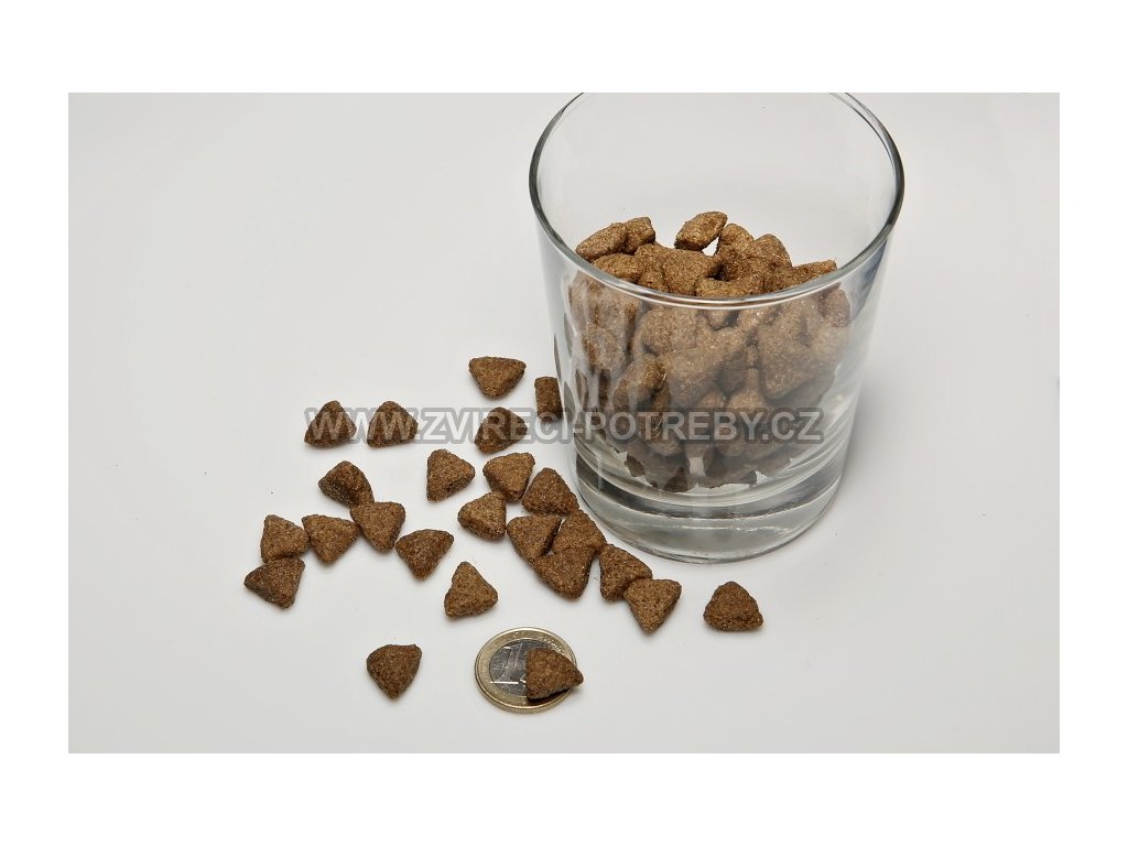 Sušené jehněčí maso, Rýže, Ječmen, Oves, Pivovarské kvasnice, Drůbeží tuk, Řepné řízky, Jehněčí vývar, Minerály, Vitaminy.