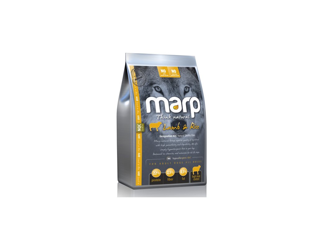 Hypoalergenní krmivo přírodní receptury bez chemických konzervantů, barviv nebo hormonů. Určeno pro dospělé psy všech plemen. Marp Lamb and Rice neobsahuje pšenici, kukuřici ani sóju, pouze oves a ječmen s rýží. Jednoduché, kvalitní složení zaručuje vynikající stravitelnost a tím i využitelnost složek krmiva. Bílkoviny i tuky jsou získávány z nejkvalitnějšího jehněčího masa. Přidaný lososový olej je zdrojem Omega 3 a 6 nenasycených mastných kyselin, který se postará o nádherně lesklou a kvalitní srst. Tento efekt navíc podpoří zinek a biotin. Marp navíc obsahujeglucosamin, MSM a Chondroitin pro zdravé klouby a kosti.