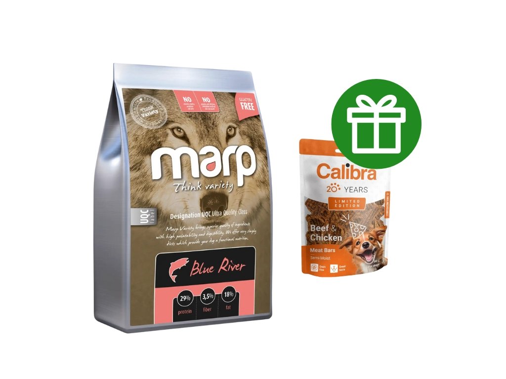 Přírodní krmivo Marp Variety Blue River obsahuje lososové maso a je vhodné pro citlivá štěňata. Neobsahuje žádné kuřecí suroviny, brambory, chemické konzervanty či obilniny. Navíc tato receptura neobsahuje žádný lepek.