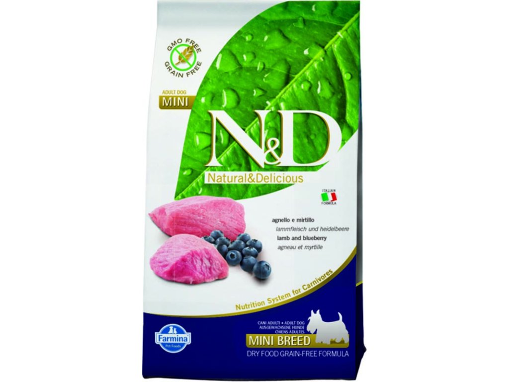 Receptura s jehněčím a borůvkou pro dospělé psy malých plemen.