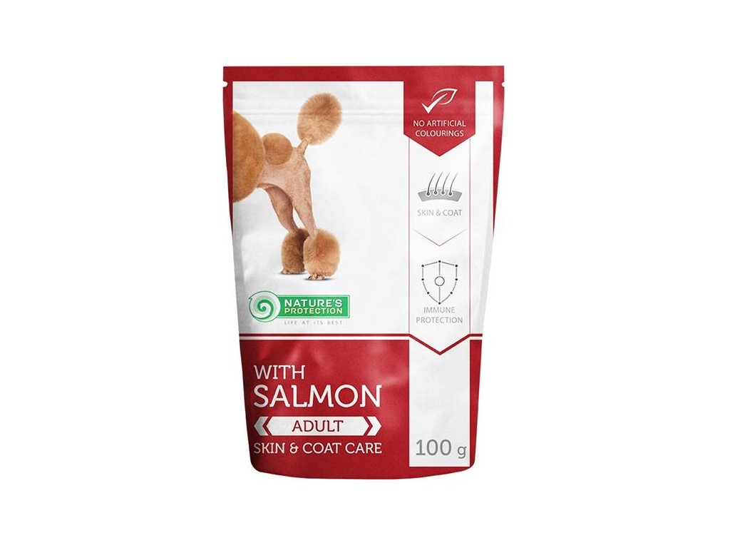 Kapsička Nature's Protection with Salmon for Adul Dog Skin & Coat Care - s lososem je kompletní krmivo určené pro dospělé psy, pomáhá pečovat o kůži a srst.