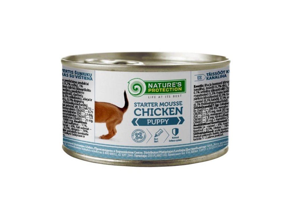 Doplňkové vlhké krmivo ve formě pěny je určené pro štěňata po odstavu ve věku 3–7 týdnů a je vhodné i pro březí a kojící feny. Hlavním zdrojem bílkovin s vysokou nutriční hodnotou je kvalitní kuřecí maso. Vyvážené složení poskytuje kalorie, vitamíny a minerály v množství potřebném pro optimální vývoj štěňat. Konzerva je ideálním doplňkem k suchému krmivu Nature´s Protection.