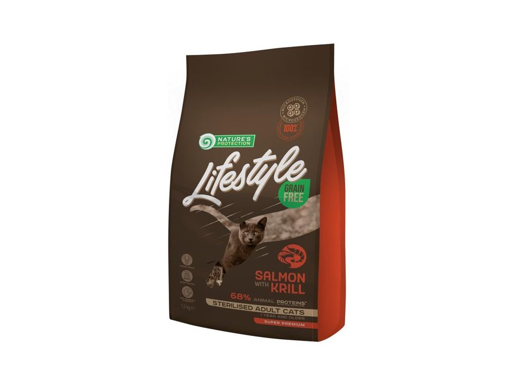 Kompletní a vyvážené krmivo s certifikovaným lososem a krunýřovkou krilovou pro sterilizované kočky.